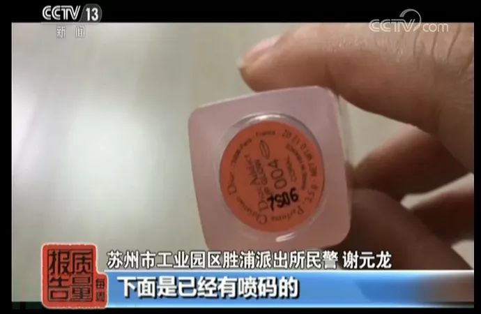第三步是喷码,国内销售的名牌化妆品一般会在瓶身喷码标注生产批次,起到产品追溯和防伪功能。不少消费者也将防伪喷码作为识别正品和赝品的重要依据,却不知不法分子在这方面也能造假。