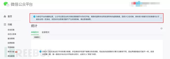 如果细心的小伙伴可能有关注到,微信官方近日发布公告,微信公众号运营后台的文章阅读数据于8月8日开始,剔除机器等非自然阅读带来的虚假数据。