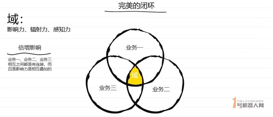 如智伴业务模式:广告轰炸——经销商大会——压货;如峰傅智慧业务模式:Baby+Zenbo机器人——幼儿园——周边产品;等等至少会分三步骤去构建一个循环。我们可以理解为业务一、业务二、业务三,这三大业务相互之间是有连接的,可相互迭加影响力。如果三者之间是没有联系的,或者是毫无相关的业务,那基本上是不会有作用的。