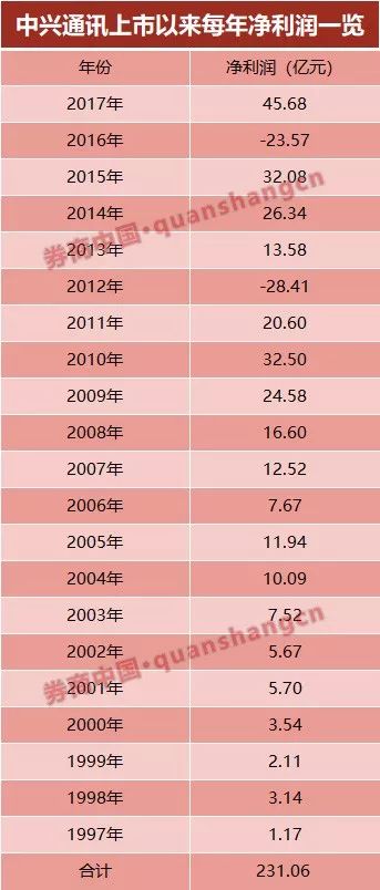 根据券商中国计算,此次14亿美元罚款加上此前中兴通讯已缴纳了8.9亿美元的罚款,罚单金额累计超过22.9亿美元(折合146.54亿人民币)。而中兴通讯自1997年上市以来,公司归属母公司的净利润累计为231.06亿元,147亿罚单约为过去21年净利的64%。