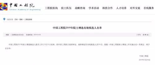 【TechWeb】4月30日,中国工程院官网今天公布了2019年院士增选有效候选人名单。经中国工程院主席团审定,最终确定的有效候选人共531位。