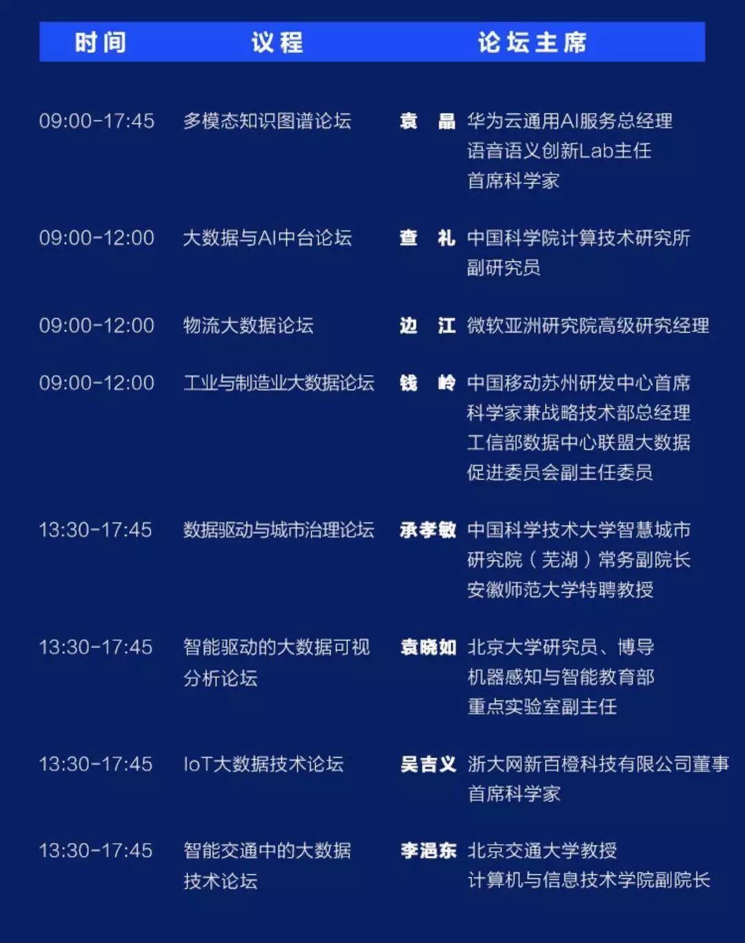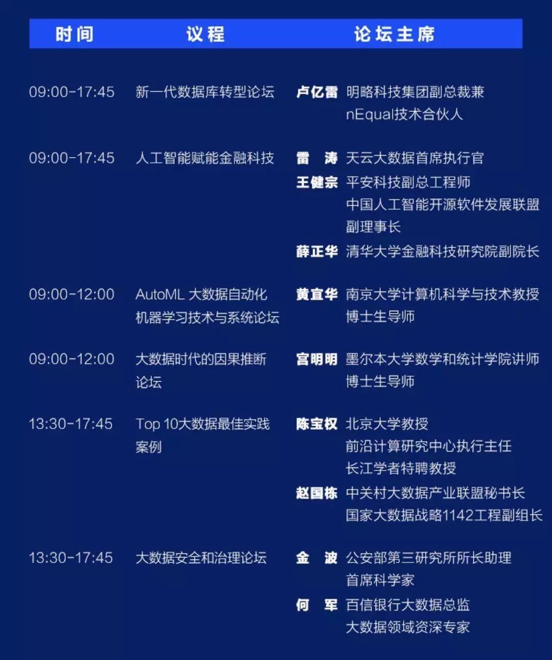 除了首日主会,主办方还精心策划了十四场专题技术和行业论坛,包括新一代数据库转型、人工智能赋能金融科技、AutoML大数据自动化机器学习技术与系统、大数据时代的因果推断、大数据安全和治理、多模态知识图谱、大数据与AI中台、物流大数据、工业与制造业大数据、数据驱动与城市治理、智能驱动的大数据可视分析、IoT大数据技术、智能交通中的大数据技术等。此外,大会还将邀请业内顶尖大数据应用的创建者和领航者,与观众分享最佳案例实践。