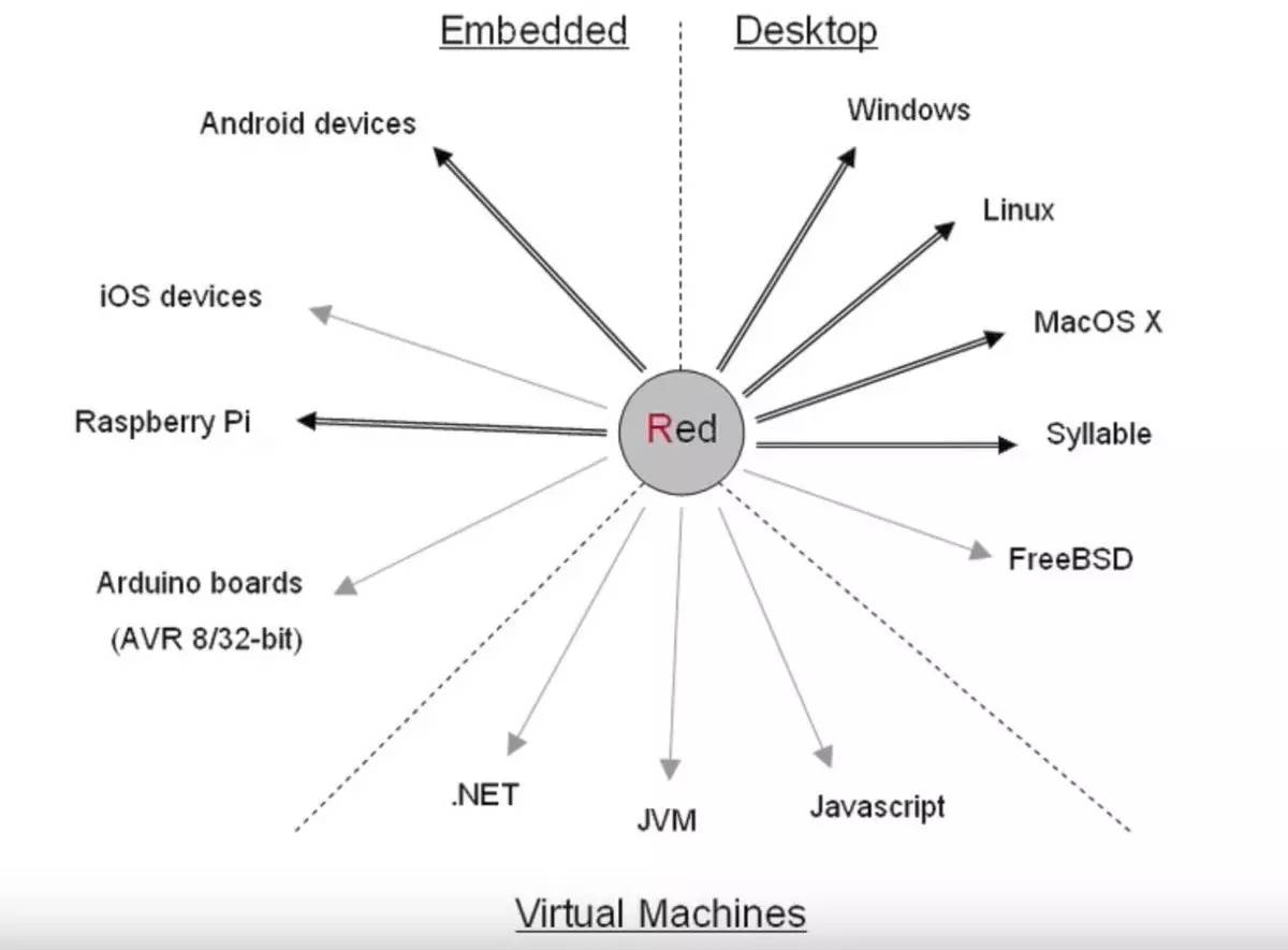 大多数语言,安装和运行需要跟着文档一步步来,像作法事一样,有些二愣子,如果没有一定的目录结构和配置文件,还运行不起来。red 你只需要下载,chmod +x,然后运行就好了。编译器,解释器,类库,cross compile 工具,全在这个 1.2M 的小小天地中。