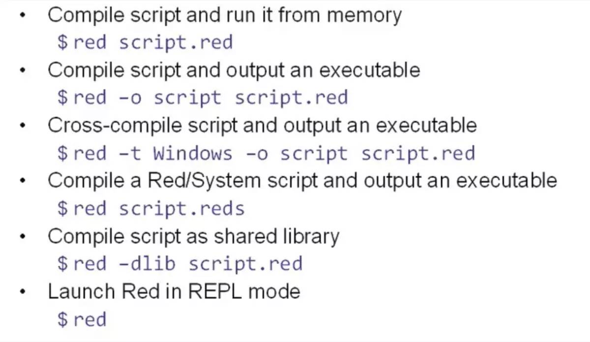 low memory footprint, GC & cross-compilation。这语言特性的画风突然变了,开始走 golang 路子了。是的,red 是一门编译型语言,不走虚拟机,直接编译成目标平台的,和 C 代码同级别性能的二进制(没有优化的编译结果是同样 C 代码 O2 编译 的 1/4 的性能)。编译时可以直接跨平台往 windows / linux / osx 等 target OS,以及 x86 / arm 等 target CPU 上面编译。话说 golang 的 cross-compilation 的方便程度可大不如 red。