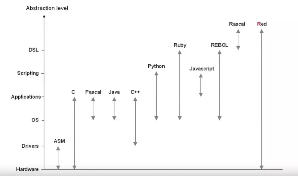 为什么 red 这样一个在座诸位可能都闻所未闻的语言会引发我的关注呢?Nenad Rakocevic 是一个原因,这哥们以后有机会再扒;另一个原因是 red 和大家耳熟能详的那些语言都不一样,非常不一样,就像吕燕盈盈立于一群貌如可儿的维密天使中间一般。