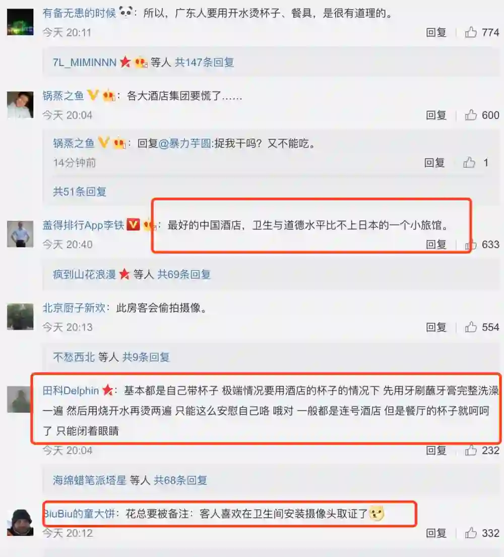 这条视频《杯子的秘密》用针孔摄像头拍摄了酒店的洗漱台和卫生间,花总说他可能是中国酒店住得最多的人,过去六年以酒店为家,入住了147间五星级酒店和精品设计酒店,超过2000个房晚,的确是以酒店为家了。