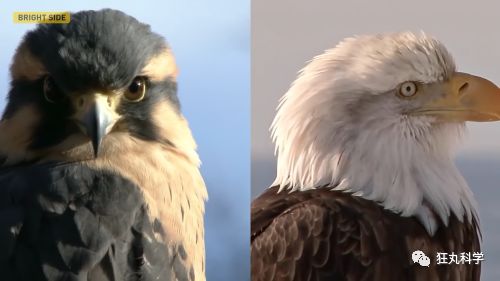 从体型上来说,一只10斤重的老鹰却拥有和人类一样大小的眼睛,但视力是人类的4到8倍。凭借超强的视力,它能从3公里远的地方发现一只小小的兔子。
