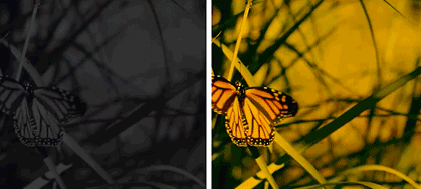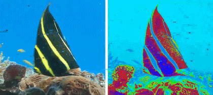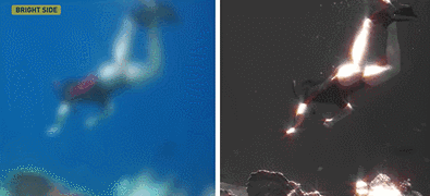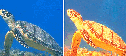 左-人类在水中的视觉,右-鲨鱼在水中的视觉
