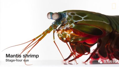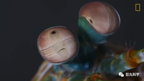 实际上,Mantis Shrimps拥有的是一种结构非常复杂的复眼,复眼里的每个小单位都能独立检测光线。凭借这个精密的结构,Mantis Shrimps还能自主调节视觉的敏感度来适应不同的环境。