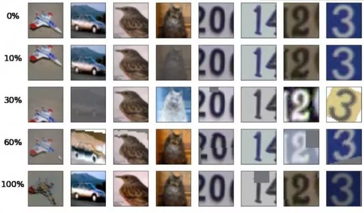 最近,谷歌已经能够通过使用 AutoAugment(一种新型的自动数据增强技术,https://arxiv.org/abs/1805.09501)在诸如 CIFAR-10 之类的数据集上达到目前最高的准确率。AutoAugment 说明了:之前只使用一系列固定变换(如水平翻转、填充和裁剪)的数据增强方法还有很大的提升空间。AutoAugment引入了 16 种几何变换和基于颜色的变换,并制定了一种可以最多选择两个指定幅度的变换的数据增强策略,从而应用于每批数据。这些具有更高性能的数据增强策略是通过直接在数据上使用强化学习训练模型学习到的。