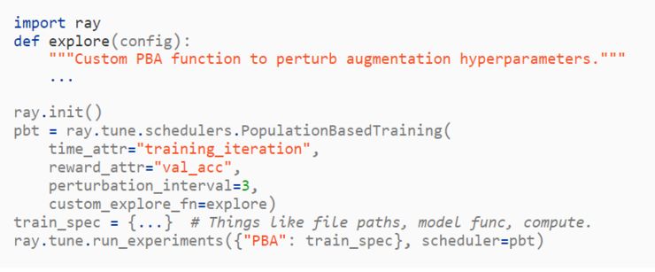 同时,我们将讨论我们最新发表的论文「Population Based Augmentation: Efficient Learning of Augmentation Policy Schedules」(论文下载地址:https://arxiv.org/abs/1905.05393.pdf)中 PBA 算法的实验结果,然后说明如何利用「Tune」(https://ray.readthedocs.io/en/latest/tune.html)框架在新数据集上运行 PBA 算法(https://github.com/arcelien/pba)。