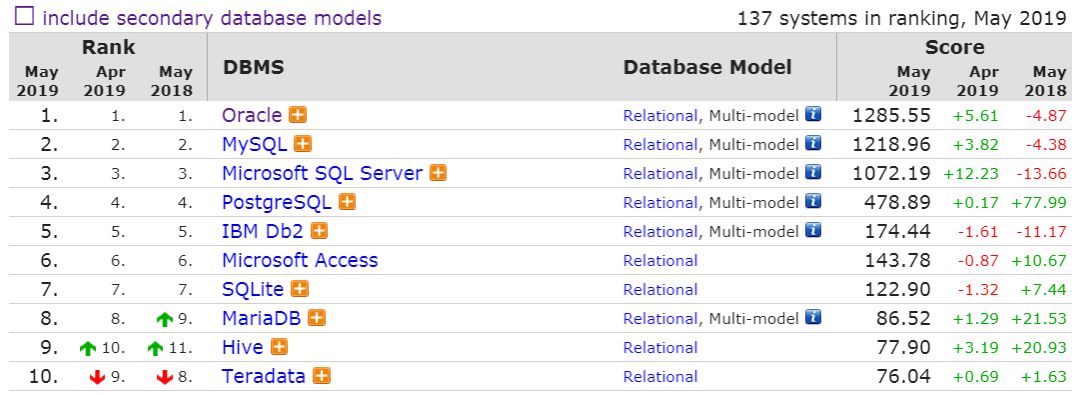 关系数据库前 10 名如下: