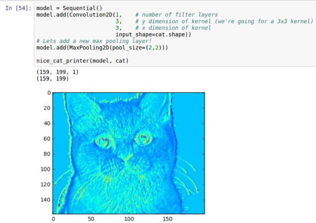 如果我们将猫咪的图片放到LeNet模型中做卷积和池化,那么效果会怎么样呢?