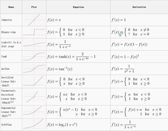 在CNN中,激活函数和其他网络一样,函数将数值压缩在一个范围内。下面列出了一些常见的函数:
