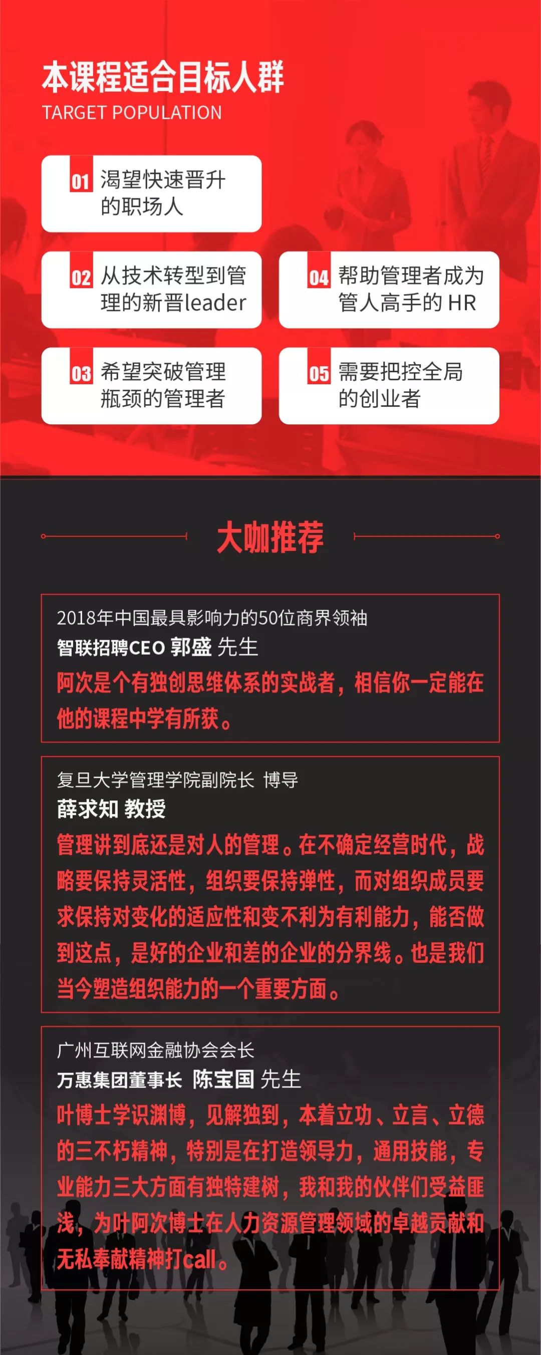 这里有一档课程《阿次的管理百课:高效管理100招》,由复星集团人力资源高管叶阿次老师带您探寻管理的本质,帮助您快速晋升,突破管理瓶颈,成为管人高手。