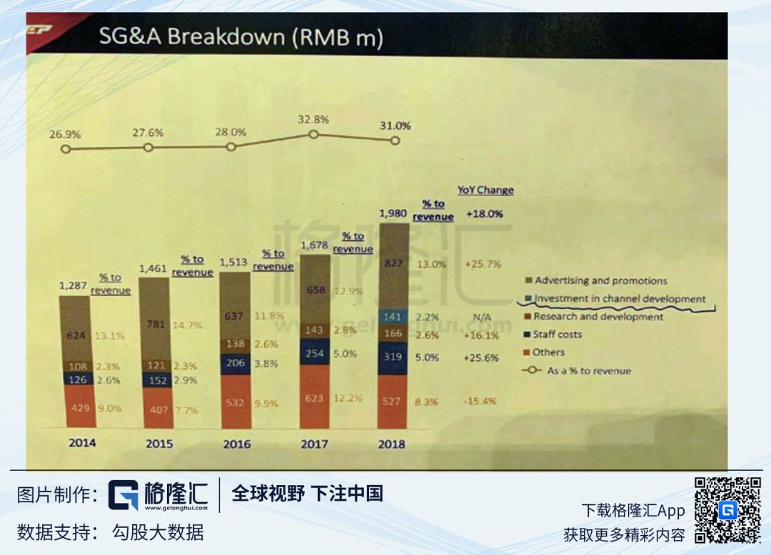 广告费用上升了,这个比例还是维持管理层的预算之内,13%以内。职工福利增加了5000万的原因是,去年业绩这么好,那么奖金肯定是要发的 ,所以就增加了。