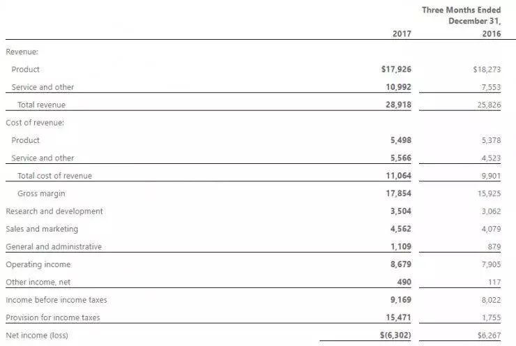 来看看微软在此前发布的 2018 财年第二季度财报( 2018 Q2 ),财报数据截止日期为 2017 年 12 月 31 日。