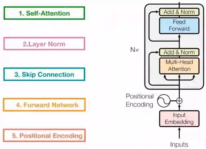 Transformer中Encoder的五个核心部分如下图: