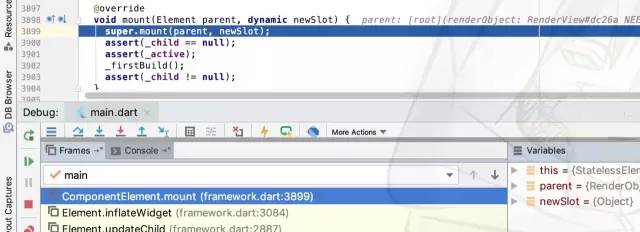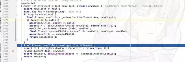 再进行小蓝,便会执行元素装载的方法,这也是 Flutter 中非常重要的一环。