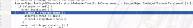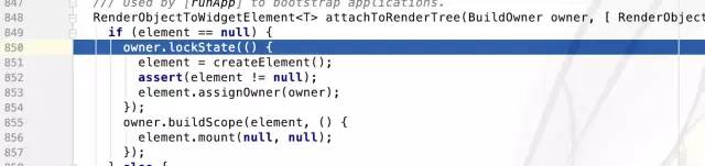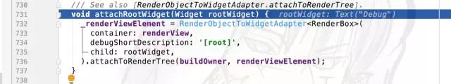 这里通过 RenderObjectToWidgetAdapter 对象的 attachToRenderTree 方法为 _renderViewElement 进行赋值。这里小蓝下一步会走到哪?