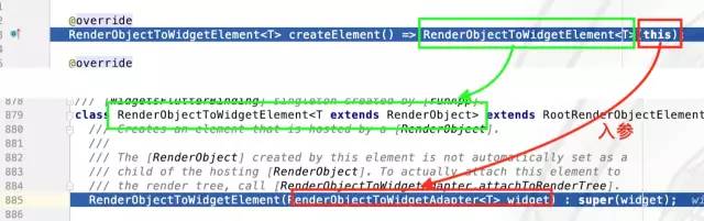 而这个 Widget 何许人也,刚才 Element 笑纳的那个根 Widget,即 RenderObjectToWidgetAdapter