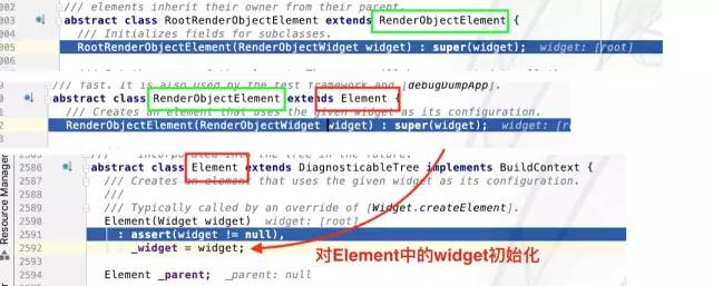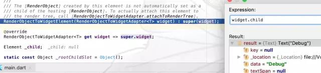 这里 RenderObjectToWidgetElement 将该 Widget 一路供奉给父类构造,并在 Element 中被笑纳。可以看出在 RenderObjectToWidgetElement 元素中获取 get widget 是通过 super 拿来的 Widget。