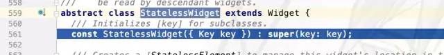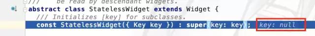 同理: StatelessWidget 也先执行 super(key:key),镜头转到: Widget 构造
