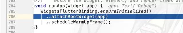 就说明 WidgetsBinding#ensureInitialized 已经 ok 了,继续执行。