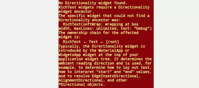 这是笔者进入 Flutter 世界中的第一个疑问。Text 也是 Widget,为什么直接会崩溃? 从这个问题出发,一起来场 debug 之旅吧。(注意: 本文不注重讲知识点,重在 debug 的操作)