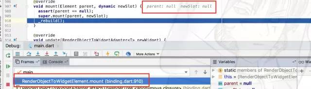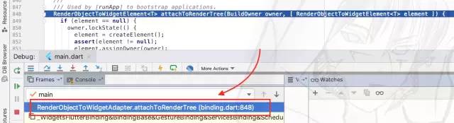 所以都会进入。如果一直小蓝,获取的个个细节都会被一点点走过,如果不想看这么多,小折或小过就行了。这时候会到达 attachToRenderTree,这里提一下,下面的 Frames 里可以看到当前执行处所在的位置,让你不至于连在哪都不知道。