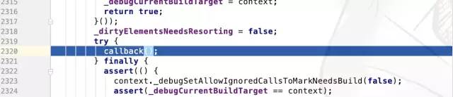 这里提问: 小蓝在此时会走到哪? 我好像听到有人说是先执行第二个入参里的方法,因为它可执行。答案是进入 buildScope,因为第二参只是一个函数类型的入参,并没有被触发。于是到达了 buildScope,这个Flutter框架核心环节之一: