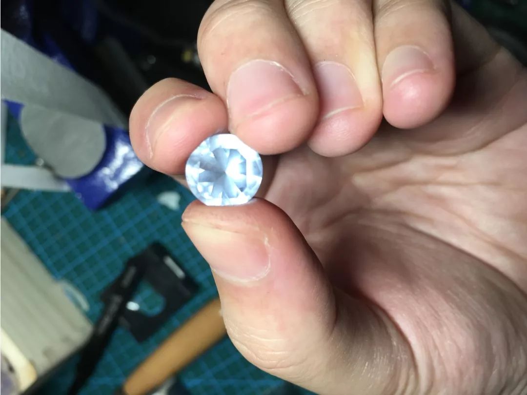 其实八心八箭在钻石的切工当中算最简单的一种,我学了三天。后来我就用这个钻和刚才炼出来的黄金,当然再加上一些我自己买的黄金,做了个钻戒送给我媳妇。