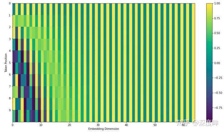如此编码的优点是能够扩展到未知的序列长度,例如前向时候有特别长的句子,其可视化如下: