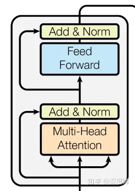 再次复习下Multi-Head Attention层的图示,可以发现在前面讲的内容基础上还加入了残差设计和层归一化操作,目的是为了防止梯度消失,加快收敛。