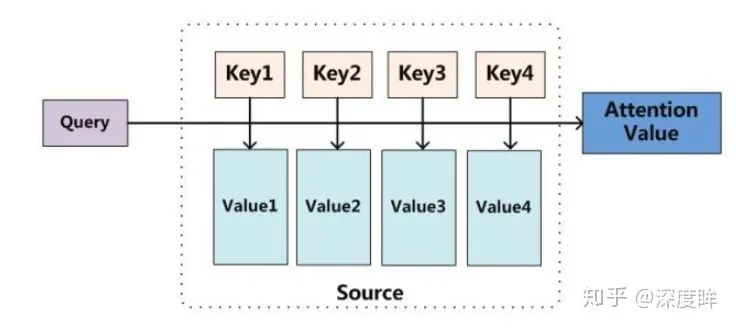 将Query(通常是向量)和4个Key(和Q长度相同的向量)分别计算相似性,然后经过softmax得到q和4个key相似性的概率权重分布,然后对应权重乘以Value(和Q长度相同的向量),最后相加即可得到包含注意力的attention值输出,理解上应该不难。举个简单例子说明: