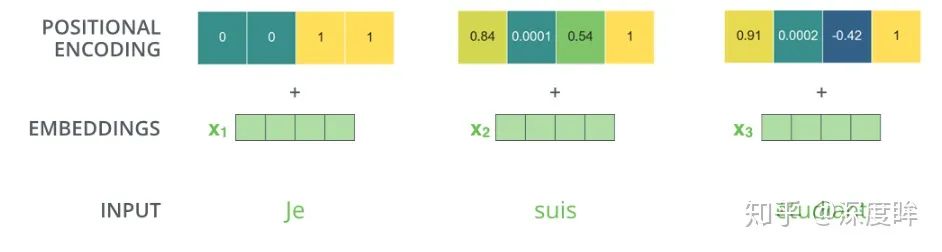 采用经过单词嵌入后的向量输入到编码器中还不够,因为transformer内部没有类似RNN的循环结构,没有捕捉顺序序列的能力,或者说无论句子结构怎么打乱,transformer都会得到类似的结果。为了解决这个问题,在编码词向量时会额外引入了位置编码position encoding向量表示两个单词i和j之间的距离,简单来说就是在词向量中加入了单词的位置信息。