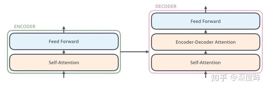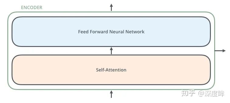 编码器由两部分组成:自注意力层和前馈神经网络层。