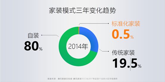 自装家装占80%,传统家装占19.5%,标准化家装只占0.5%。