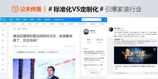 其中还发生了一件事,就是博洛尼的蔡总和我们陈总之间的互怼,他们代表着定制化和标准化之间的争论,引起整个行业的沸腾,从此在客户心中建立认知。