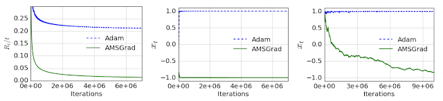 ADAM和AMSGRAD在一个简单的一维凸问题上的性能比较