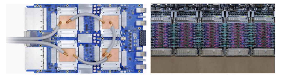 单个TPU v3设备(左)和TPU v3 Pod的一部分(右)