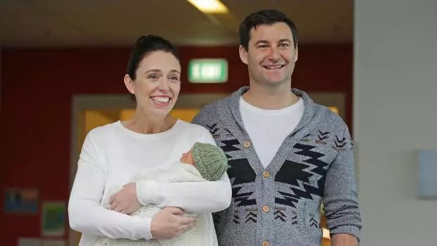 2018年6月24日,阿德恩和伴侣克拉克·盖福德出现在媒体前。和以往不同的是,阿德恩的臂弯里躺着他们刚刚出生3天的女儿Neve Te Aroha Ardern Gayford,发布会上,刚刚当妈妈的阿德恩自己都觉得这个名字长得有点离谱。