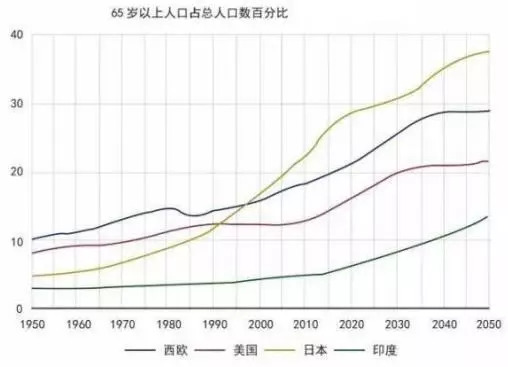 老龄化人口从两个方面影响了服务机器人的发展。其一是劳动力市场的缩水,另外一个因素则是提供满足健康护理需要的解决方案的机遇。美国正处于未来20年发展趋势的入口:退休工人数量占当前劳动力数量的百分比将近翻倍,即从当前的每10个工人中有2个退休的状态演变为2030年的每10个工人中有4个退休的状态。在日本,这种情况则更加糟糕,快速增长的老龄化人口是日本提出发展机器人技术作为国家政策的主要诱因。