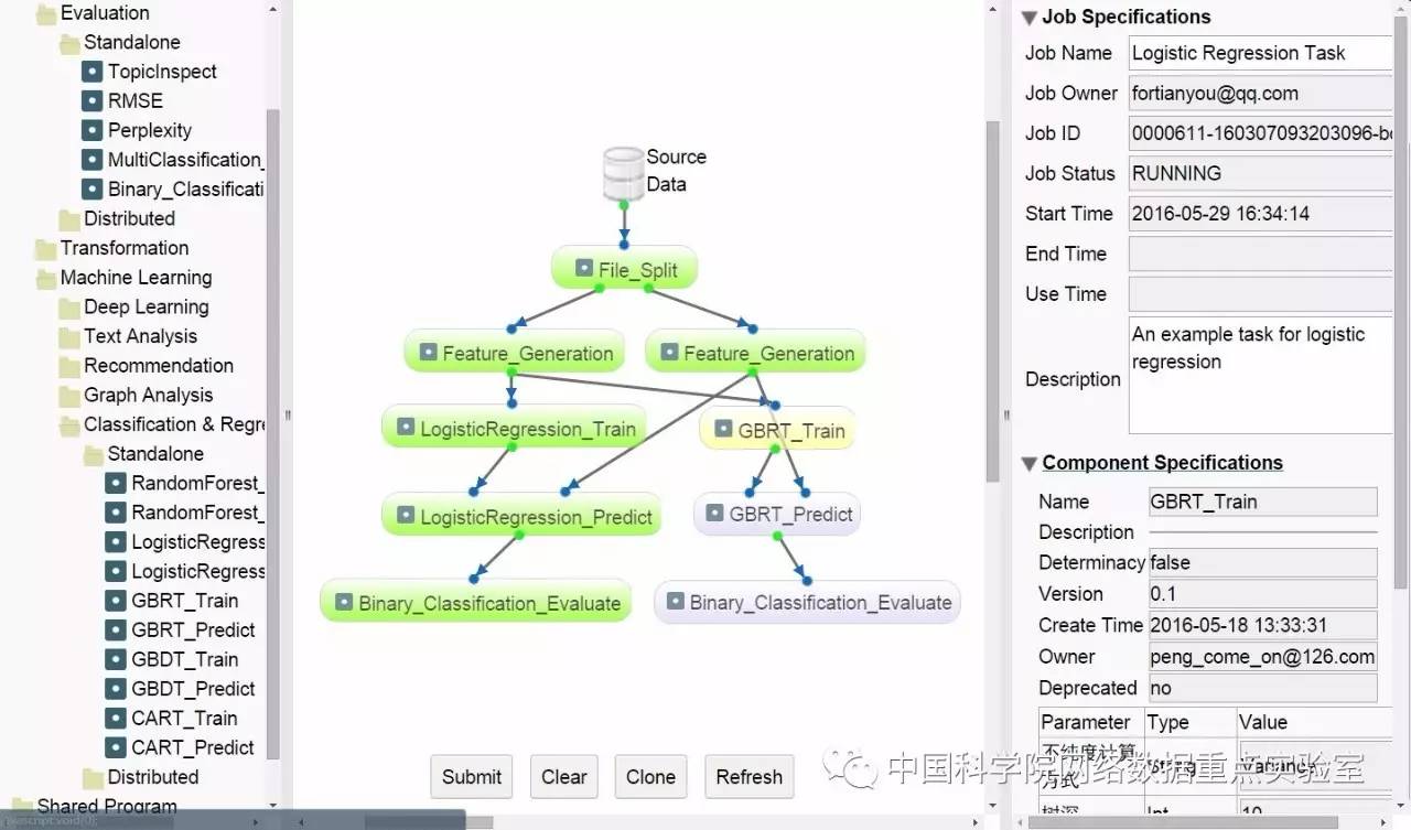 大数据分析研究组开源了Easy Machine Learning系统,其通过交互式图形化界面让机器学习应用开发变得简单快捷,系统集成了数据处理、模型训练、性能评估、结果复用、任务克隆、ETL等多种功能,此外系统中还提供了丰富的应用案例以及基于Docker的分布式运行环境,欢迎大家下载试用。
