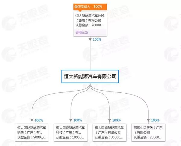 就在上述公司成立后三日,1月28日,恒大又成立了四家业务涉及汽车相关产业的公司。四家公司分别为,恒大国能新能源汽车销售(广东)有限公司、恒大国能新能源汽车科技(广东)有限公司、恒大国能新能源汽车(广东)有限公司和深涛生活服务(广东)有限公司。而这四家公司均为恒大新能源汽车有限公司全资控股。