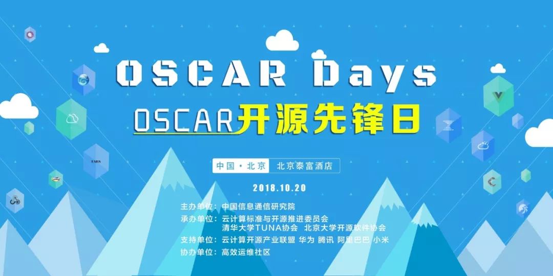 OSCAR 开源先锋日旨在为本土开源企业与开源软件提供分享与交流的平台,促进国产开源软件的繁荣发展。该活动由中国信息通信研究院主办,云计算标准与开源推进委员会、清华大学 TUNA 协会、北京大学开源软件协会承办,由云计算开源产业联盟、华为、腾讯、阿里巴巴、小米支持,高效运维社区协办。