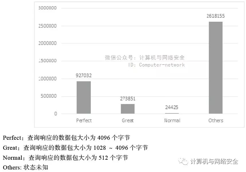图16是我们扫描互联网上开放查询服务的第三方DNS服务器(总数380多万台)后获得的放大倍数统计。