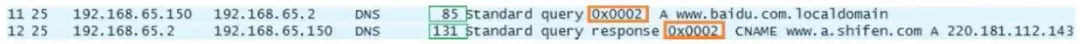可以看到,对于单次查询,其回复的目的地靠的仅是框中标示的ID(0x0002),而对源IP合法与否并没有相应的验证措施,即DNS的这种模式允许我们把查询包中的IP源设置为任意IP地址,至此满足了攻击实施的最重要前提条件。