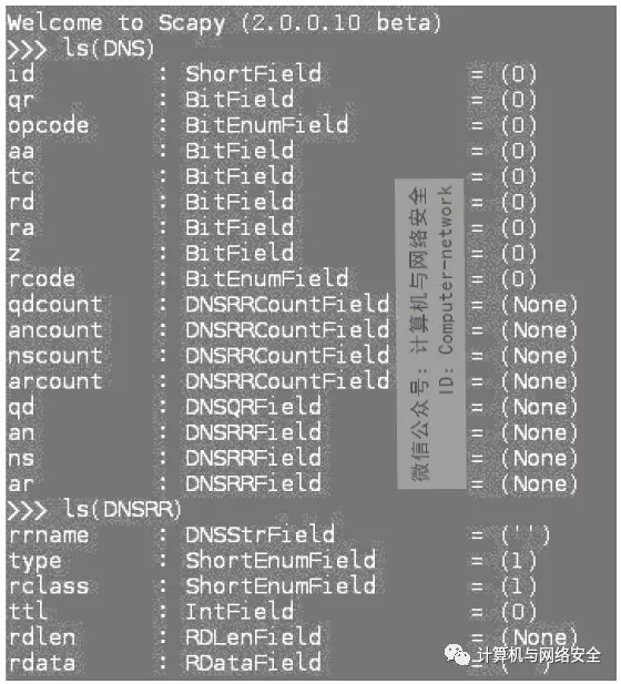 脚本使用Python编写,并使用了第三方Scapy库。Scapy对DNS的解析如图19所示。