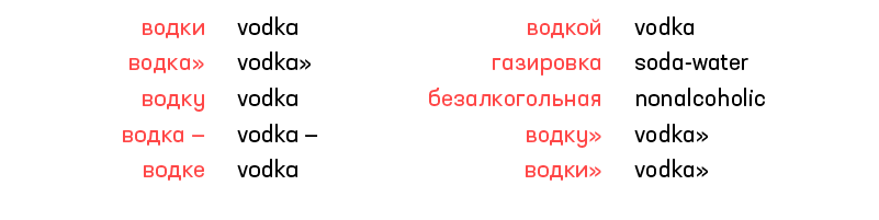 Primer.ai 的 Leonard Apeltsin 曾写过一篇关于俄语 NLP 的文章:https://primer.ai/blog/Russian-Natural-Language-Processing/,其中,他在通过 RusVectors 构建的嵌入空间中查找了与词 Vodka 最近的词。RusVectors 是使用有关俄语形态学的知识构建的,这与 FastText 的情况不同。结果很有意思: